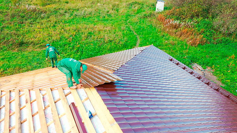 Поэтому при выборе данного материала мы рекомендуем обращаться к специалистам, которые проведут весь комплекс работ: от установки стропильной системы, до монтажа водосточной системы, снегозадержания и подшива свесов кровли.
