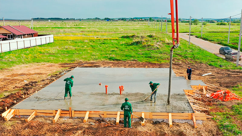 Необходимо предусмотреть удобный подъезд для автомиксера, заранее позаботиться о бетононасосе или лотках для подачи рабочей смеси в опалубку.