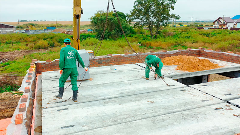 Работу по заливке перекрытия должны вести высококвалифицированные рабочие и ни в коем случае не нарушать непрерывность литья, иначе не будет расчетной прочности.