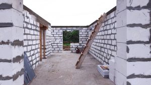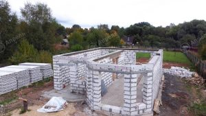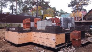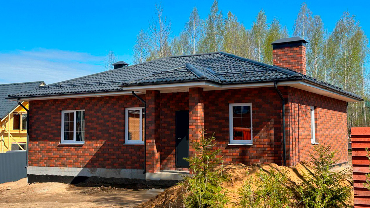 При строительстве этого дома использовался газобетон марки D 500. Облицовочный одинарный кирпич и планкен. Кровельное покрытие – битумная черепица. Железобетонные плиты перекрытия. В доме предусмотрены: балкон, 2 террасы, навес для машины, сауна и спортзал. Срок строительства – 4 месяца