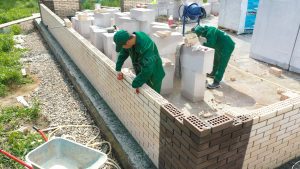 При строительстве этого дома использовался газобетонный блок марки D 500. Облицовочный кирпич полуторный «Баварская кладка». Кровельное покрытие – металлочерепица толщиной 0,5 мм. В доме совмещенные кухня-гостинная и раздельный санузел. Срок строительства – 3 месяца