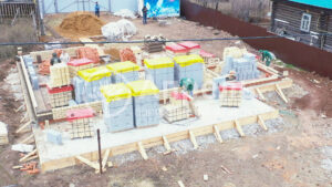 При строительстве этой бани использовался: газобетонный блок марки D 500. Облицовочный кирпич полуторный «КУЗСМ» марки М 150. Кровельное покрытие металлочерепица «Монтеррей». В бане обустроена мансарда и застекленная мангальная комната. Срок строительства 3,5 месяца