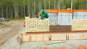 При строительстве этого дома использовался газобетонный блок марки D 500. Облицовочный кирпич полуторный «ПКК на Закаменной» марки М 150. Кровельное покрытие металлочерепица «Монтеррей». В доме предусмотрен цокольный этаж и баня. Срок строительства 6 месяцев