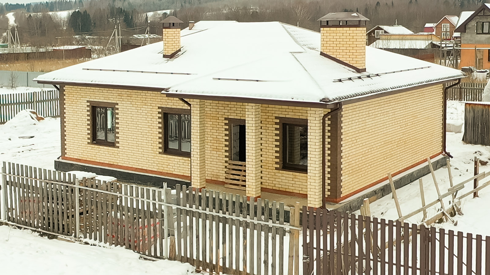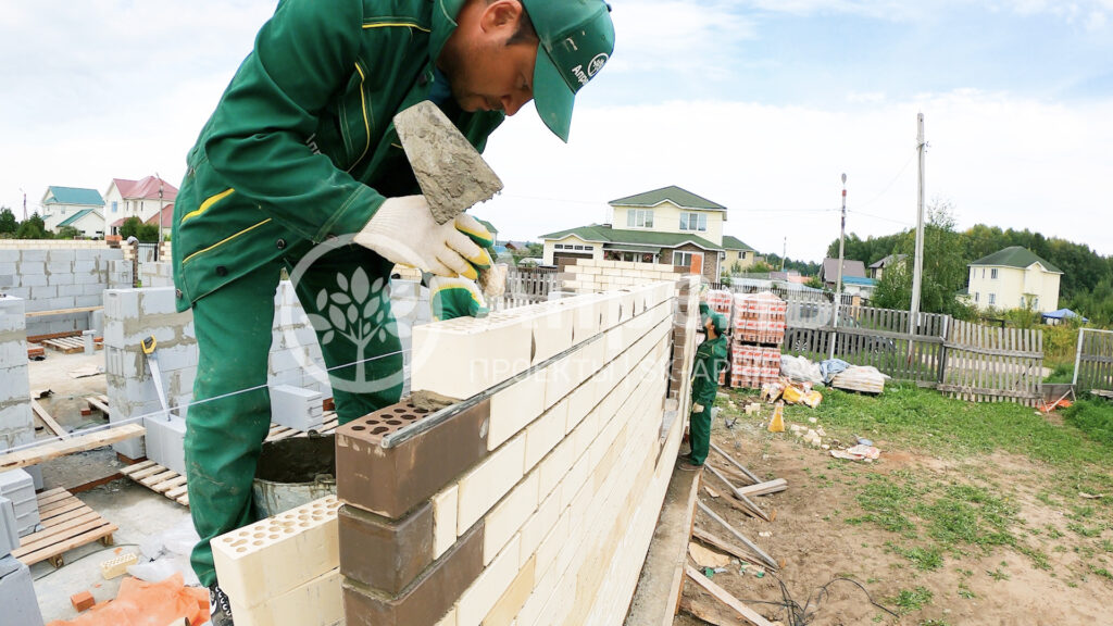 Фасад полуторный лицевой кирпич, металлопластиковые окна