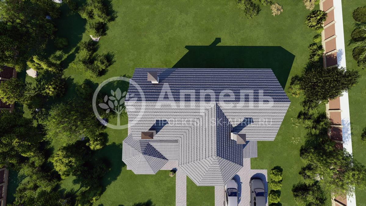Стропильный каркас (доска сечением 200х50 мм), обрешетка (доска сечением 150х25 мм). Контробрешетка из бруска (50х50 мм). Пропитка пиломатериала огнебиозащитой. Ветро-влагозащитная мембрана Изоспан. Кровля — металлочерепица Grand Line (толщина 0,5 мм). Обшивка свесов кровли виниловыми софитами, монтаж ветровой планки.