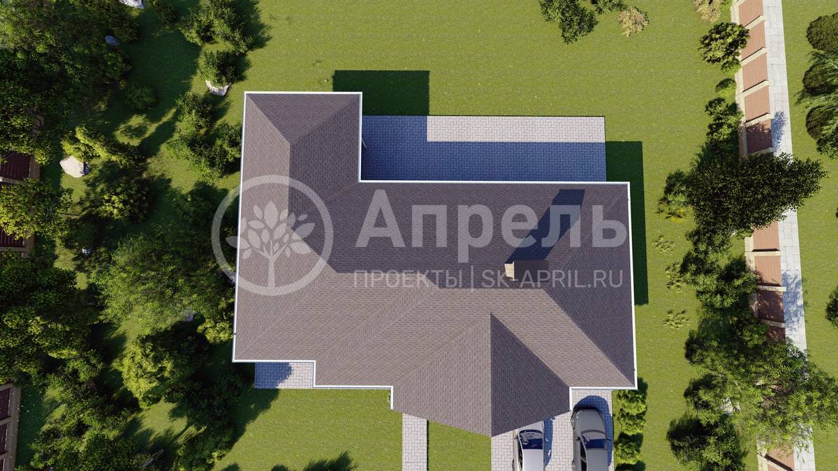 Стропильный каркас (доска сечением 200х50 мм), обрешетка (доска сечением 150х25 мм). Контробрешетка из бруска (50х50 мм). Пропитка пиломатериала огнебиозащитой. Ветро-влагозащитная мембрана Изоспан. Кровля — металлочерепица Grand Line (толщина 0,5 мм). Обшивка свесов кровли виниловыми софитами, монтаж ветровой планки.