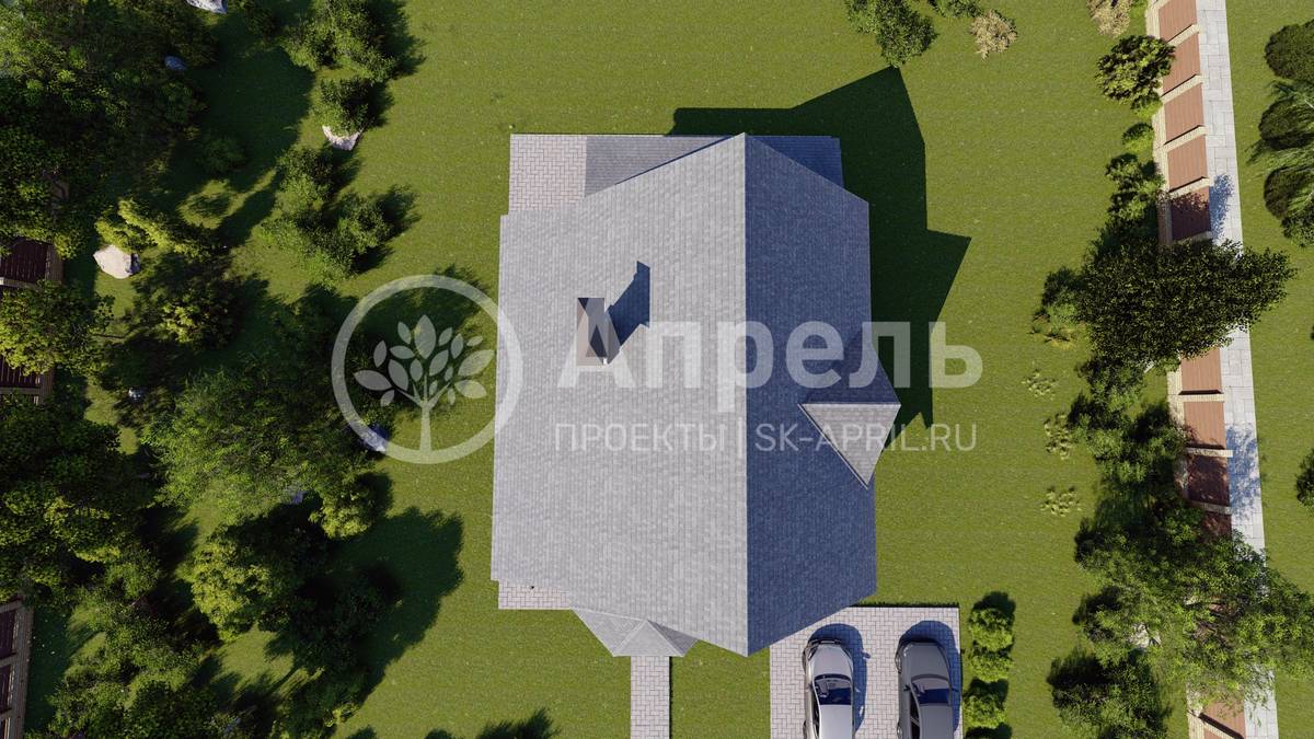 Стропильный каркас (доска сечением 200х50 мм), обрешетка (доска сечением 150х25 мм). Контробрешетка из бруска (50х50 мм). Пропитка пиломатериала огнебиозащитой. Ветро-влагозащитная мембрана Изоспан. Кровля — металлочерепица Grand Line (толщина 0,5 мм). Обшивка свесов кровли виниловыми софитами, монтаж ветровой планки.