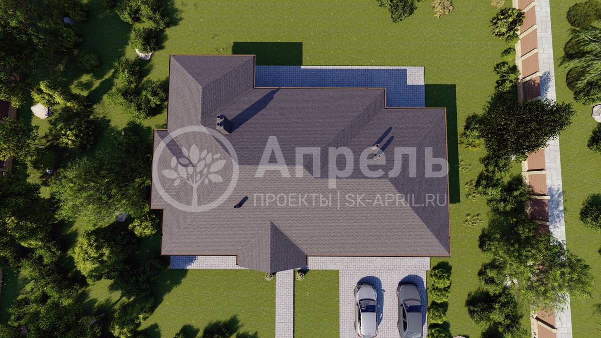 Стропильный каркас (доска сечением 200х50 мм), обрешетка (доска сечением 150х25 мм). Контробрешетка из бруска (50х50 мм). Пропитка пиломатериала огнебиозащитой. Ветро-влагозащитная мембрана Изоспан. Кровля — металлочерепица Grand Line (толщина 0,5 мм). Обшивка свесов кровли виниловыми софитами, монтаж ветровой планки.