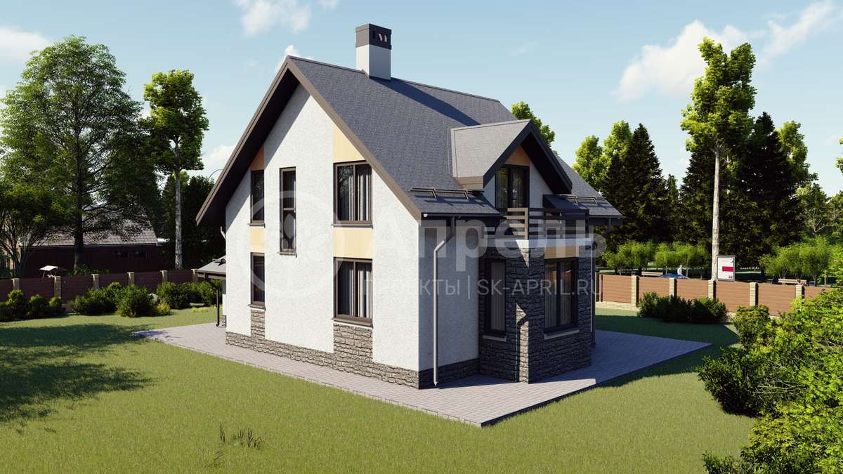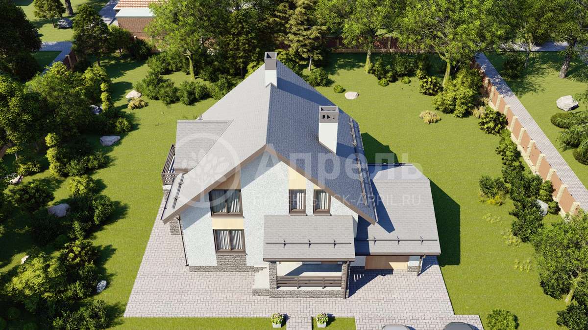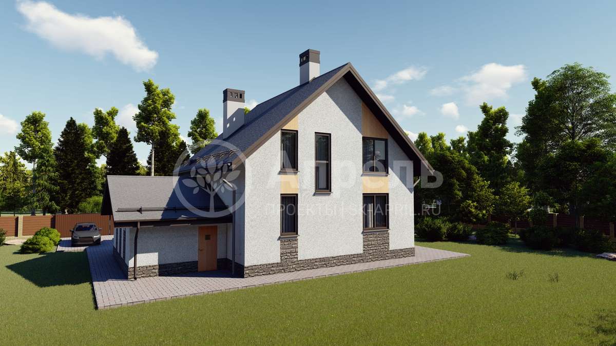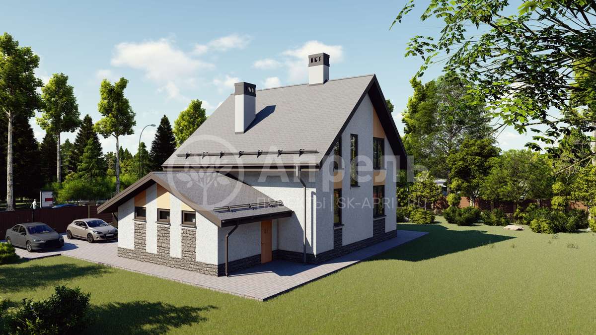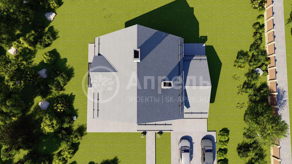 Стропильный каркас (доска сечением 200х50 мм), обрешетка (доска сечением 150х25 мм). Контробрешетка из бруска (50х50 мм). Пропитка пиломатериала огнебиозащитой. Ветро-влагозащитная мембрана Изоспан. Кровля — металлочерепица Grand Line (толщина 0,5 мм). Обшивка свесов кровли виниловыми софитами, монтаж ветровой планки.
