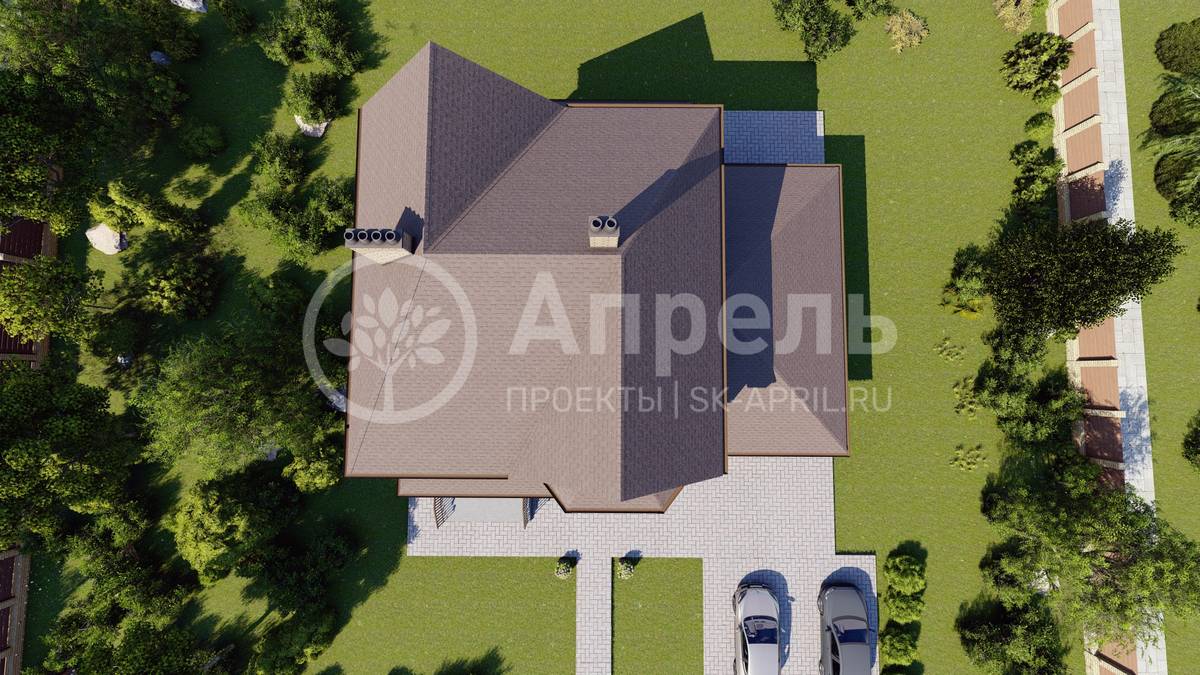 Стропильный каркас (доска сечением 200х50 мм), обрешетка (доска сечением 150х25 мм). Контробрешетка из бруска (50х50 мм). Пропитка пиломатериала огнебиозащитой. Ветро-влагозащитная мембрана Изоспан. Кровля — металлочерепица Grand Line (толщина 0,5 мм). Обшивка свесов кровли виниловыми софитами, монтаж ветровой планки.