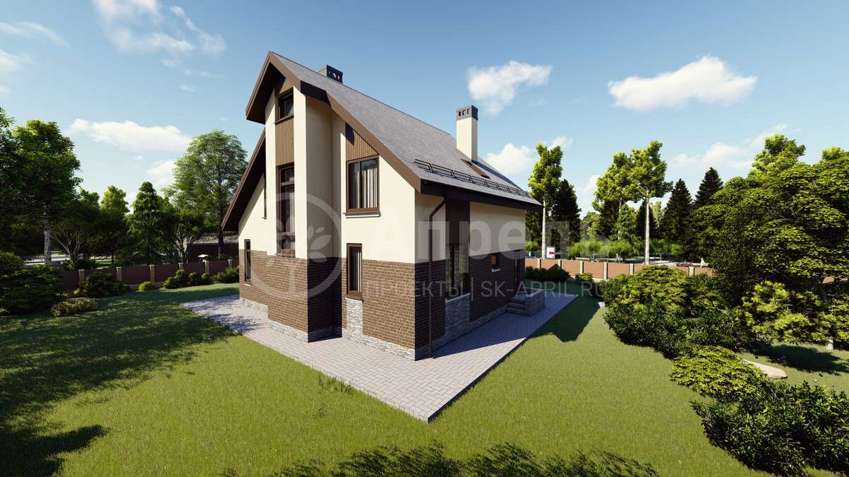 Стропильный каркас (доска сечением 200х50 мм), обрешетка (доска сечением 150х25 мм). Контробрешетка из бруска (50х50 мм). Пропитка пиломатериала огнебиозащитой. Ветро-влагозащитная мембрана Изоспан. Кровля — металлочерепица Grand Line (толщина 0,5 мм). Обшивка свесов кровли виниловыми софитами, монтаж ветровой планки.