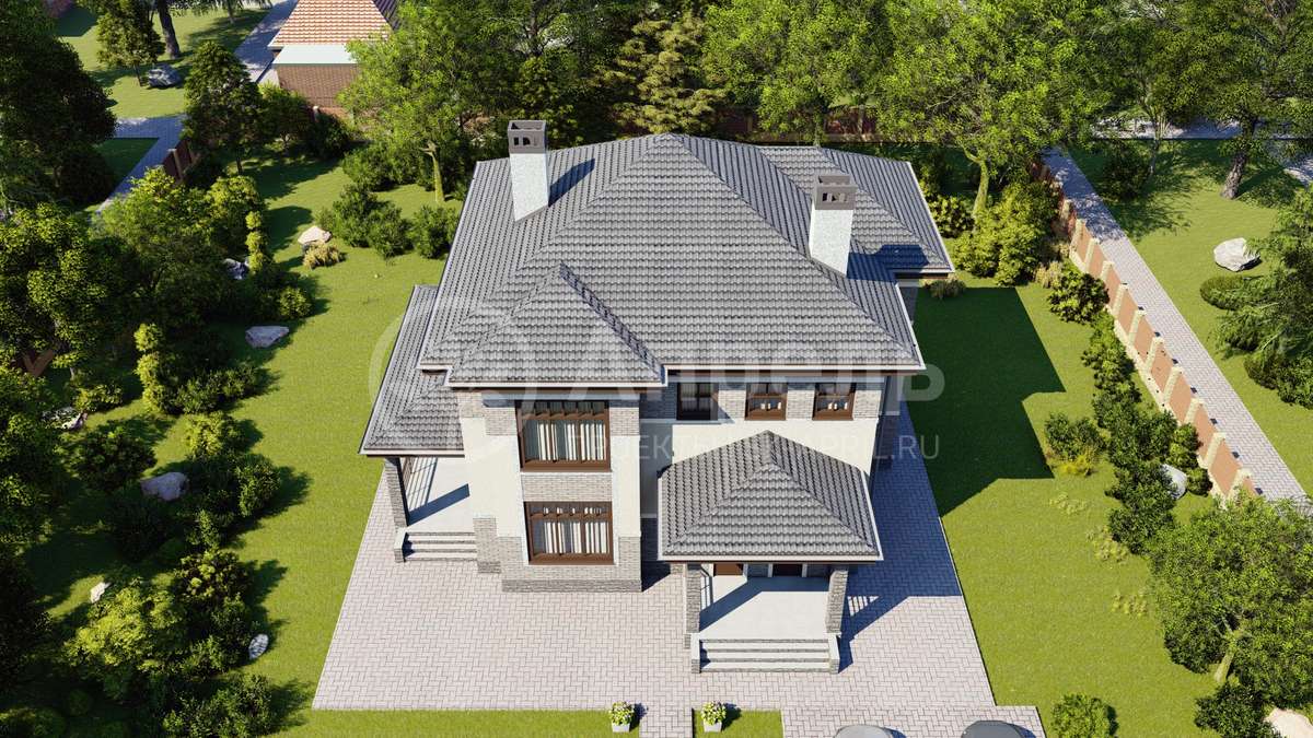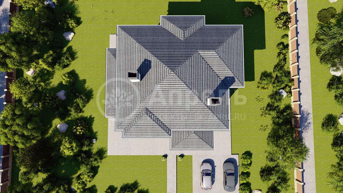 Стропильный каркас (доска сечением 200х50 мм), обрешетка (доска сечением 150х25 мм). Контробрешетка из бруска (50х50 мм). Пропитка пиломатериала огнебиозащитой. Ветро-влагозащитная мембрана Изоспан. Кровля — металлочерепица Grand Line (толщина 0,5 мм). Обшивка свесов кровли виниловыми софитами, монтаж ветровой планки.