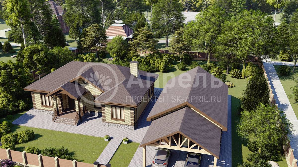 Стропильный каркас (доска сечением 200х50 мм), обрешетка (доска сечением 150х25 мм). Контробрешетка из бруска (50х50 мм). Пропитка пиломатериала огнебиозащитой. Ветро-влагозащитная мембрана Изоспан. Кровля — металлочерепица Grand Line (толщина 0,5 мм). Обшивка свесов кровли виниловыми софитами, монтаж ветровой планки.