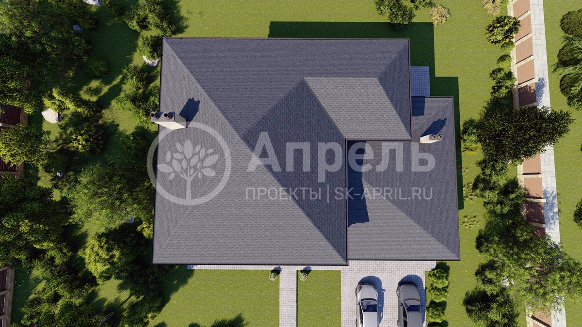 Стропильный каркас (доска сечением 200х50 мм), обрешетка (доска сечением 150х25 мм). Контробрешетка из бруска (50х50 мм). Пропитка пиломатериала огнебиозащитой. Ветро-влагозащитная мембрана Изоспан. Кровля — металлочерепица Grand Line (толщина 0,5 мм). Обшивка свесов кровли виниловыми софитами, монтаж ветровой планки.