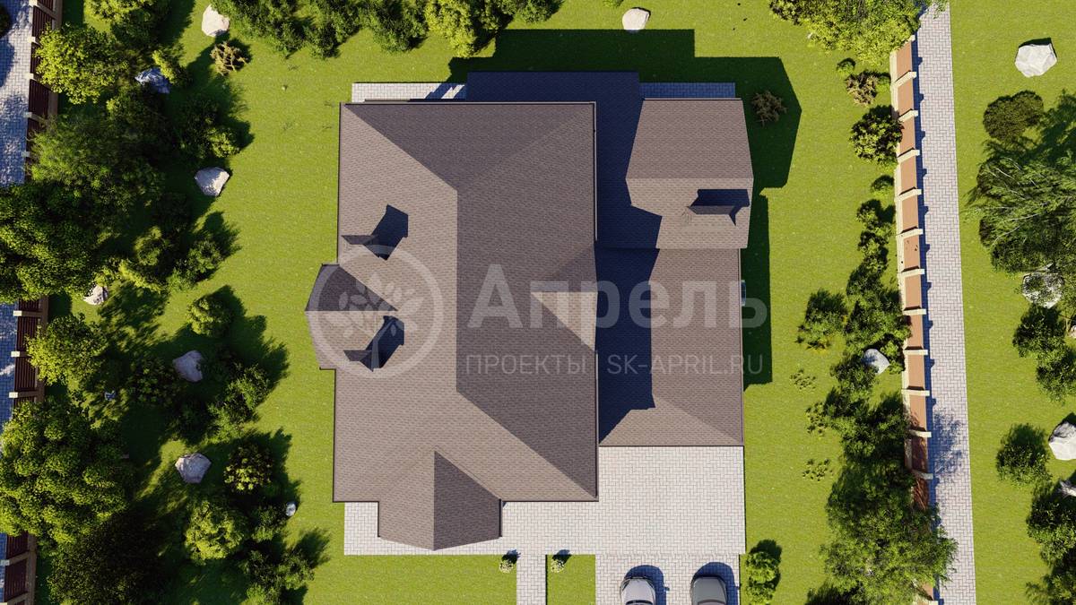 Стропильный каркас (доска сечением 200х50 мм), обрешетка (доска сечением 150х25 мм). Контробрешетка из бруска (50х50 мм). Пропитка пиломатериала огнебиозащитой. Ветро-влагозащитная мембрана Изоспан. Кровля — металлочерепица Grand Line (толщина 0,5 мм). Обшивка свесов кровли виниловыми софитами, монтаж ветровой планки.