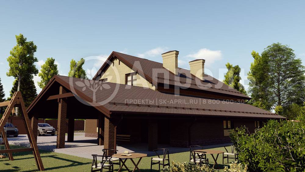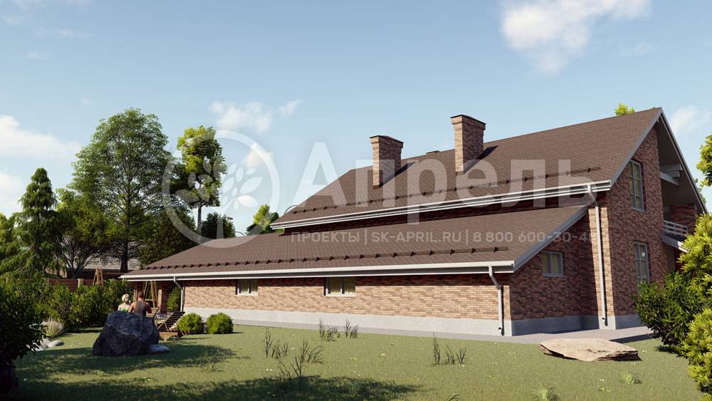Стропильный каркас (доска сечением 200х50 мм), обрешетка (доска сечением 150х25 мм). Контробрешетка из бруска (50х50 мм). Пропитка пиломатериала огнебиозащитой. Ветро-влагозащитная мембрана Изоспан. Кровля — металлочерепица Grand Line (толщина 0,5 мм). Обшивка свесов кровли виниловыми софитами, монтаж ветровой планки.