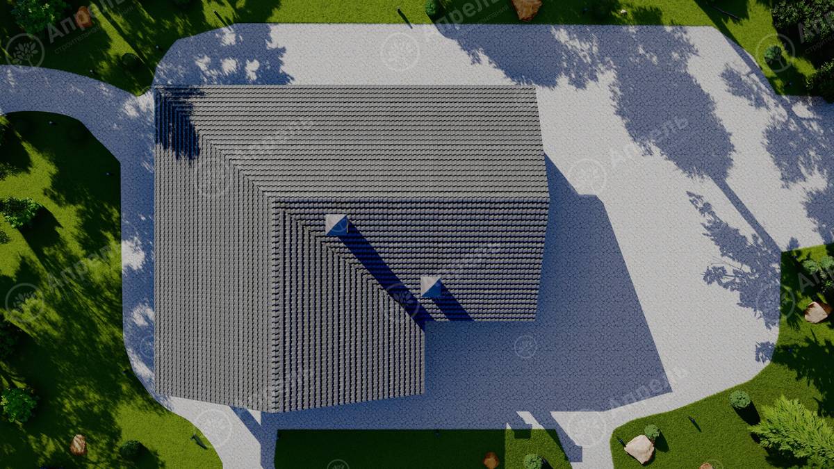 Стропильный каркас (доска сечением 200х50 мм), обрешетка (доска сечением 150х25 мм). Контробрешетка из бруска (50х50 мм). Пропитка пиломатериала огнебиозащитой. Ветро-влагозащитная мембрана Изоспан. Кровля — металлочерепица Grand Line (толщина 0,5 мм). Обшивка свесов кровли виниловыми софитами, монтаж ветровой планки.