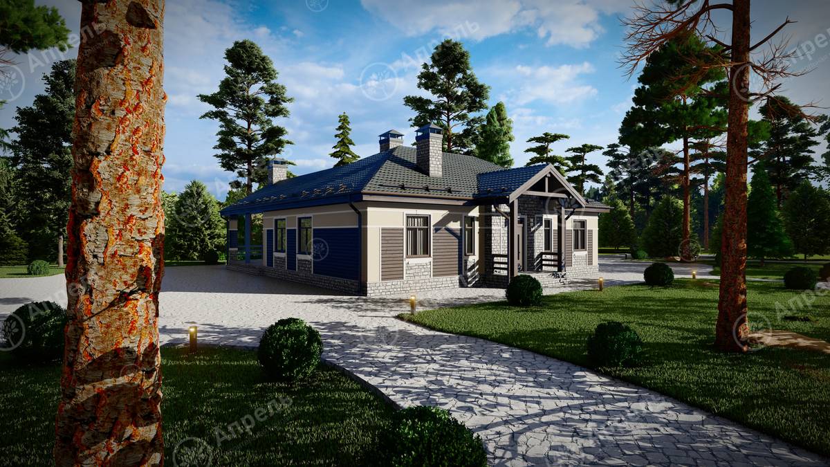 Стропильный каркас (доска сечением 200х50 мм), обрешетка (доска сечением 150х25 мм). Контробрешетка из бруска (50х50 мм). Пропитка пиломатериала огнебиозащитой. Ветро-влагозащитная мембрана Изоспан. Кровля — металлочерепица Grand Line (толщина 0,5 мм). Обшивка свесов кровли виниловыми софитами, монтаж ветровой планки.