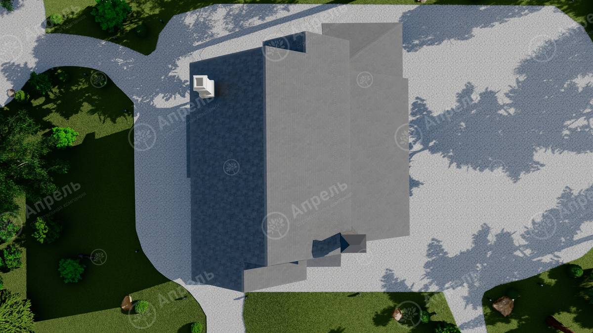 Стропильный каркас (доска сечением 200х50 мм), обрешетка (доска сечением 150х25 мм). Контробрешетка из бруска (50х50 мм). Пропитка пиломатериала огнебиозащитой. Ветро-влагозащитная мембрана Изоспан. Кровля — металлочерепица Grand Line (толщина 0,5 мм). Обшивка свесов кровли виниловыми софитами, монтаж ветровой планки.