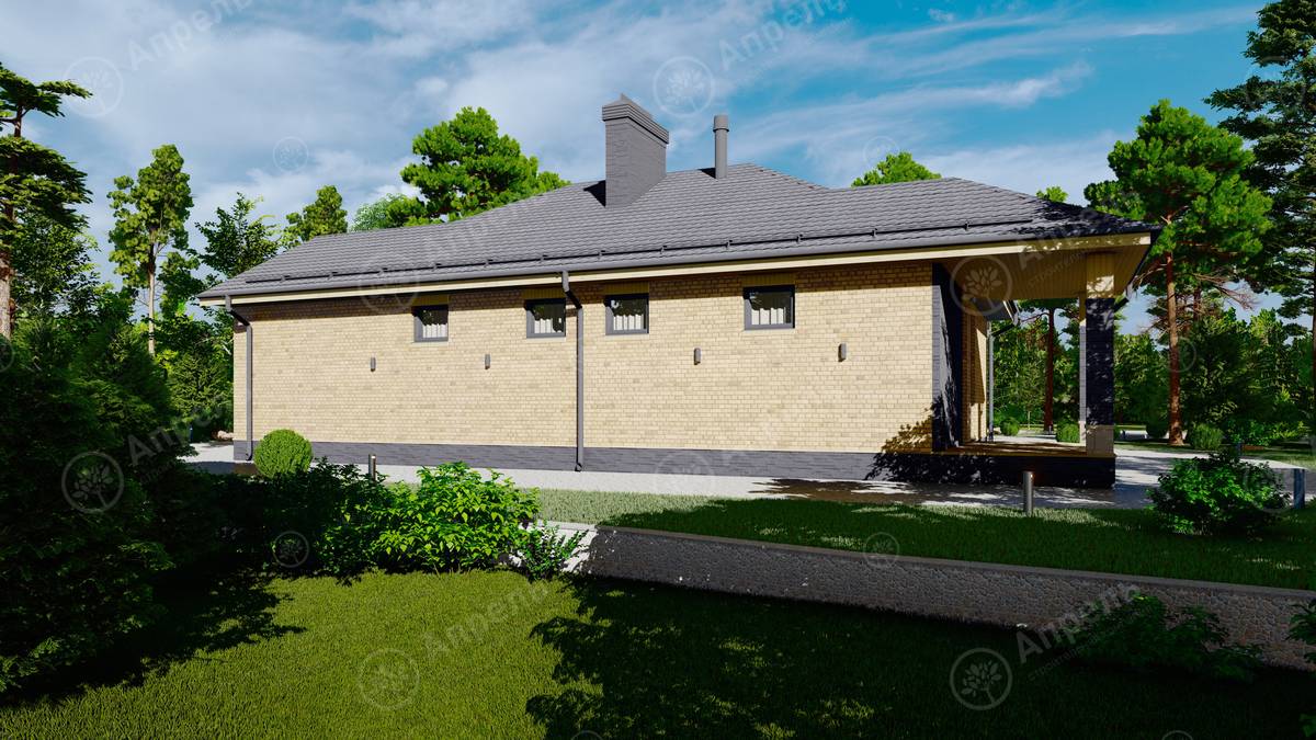 Стропильный каркас (доска сечением 200х50 мм), обрешетка (доска сечением 150х25 мм). Контробрешетка из бруска (50х50 мм). Пропитка пиломатериала огнебиозащитой. Ветро-влагозащитная мембрана Изоспан. Кровля — металлочерепица Grand Line (толщина 0,5 мм). Обшивка свесов кровли виниловыми софитами, монтаж ветровой планки.