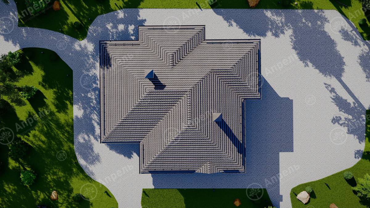 Стропильный каркас (доска сечением 200х50 мм), обрешетка (доска сечением 150х25 мм). Контробрешетка из бруска (50х50 мм). Пропитка пиломатериала огнебиозащитой. Ветро-влагозащитная мембрана Изоспан. Кровля — металлочерепица Grand Line (толщина 0,5 мм). Обшивка свесов кровли виниловыми софитами, монтаж ветровой планки.
