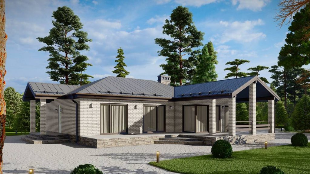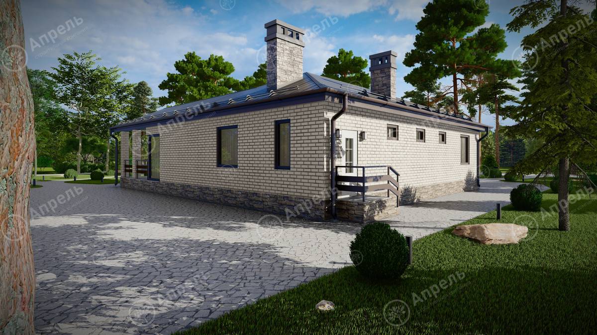 Стропильный каркас (доска сечением 200х50 мм), обрешетка (доска сечением 150х25 мм). Контробрешетка из бруска (50х50 мм). Пропитка пиломатериала огнебиозащитой. Ветро-влагозащитная мембрана Изоспан. Кровля — металлочерепица Grand Line (толщина 0,5 мм). Обшивка свесов кровли виниловыми софитами, монтаж ветровой планки.