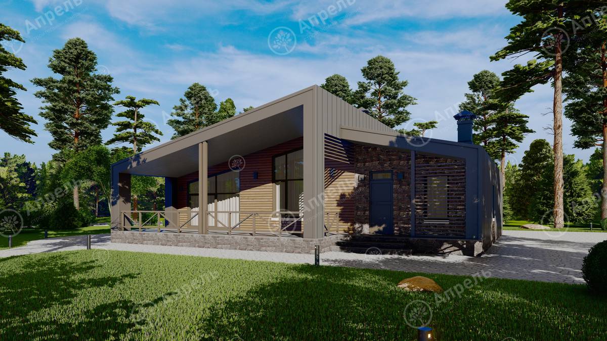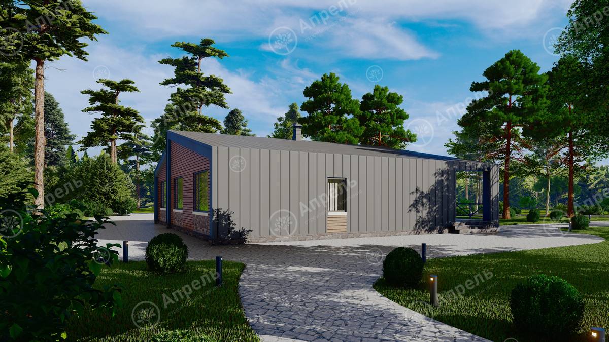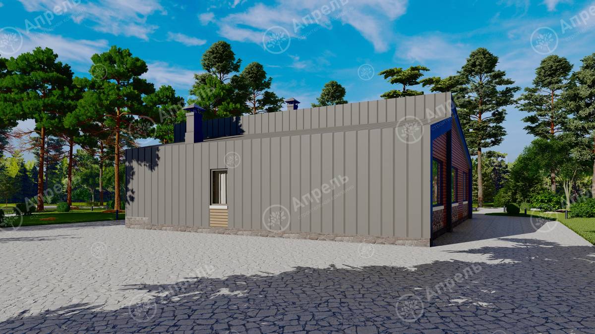 Стропильный каркас (доска сечением 200х50 мм), обрешетка (доска сечением 150х25 мм). Контробрешетка из бруска (50х50 мм). Пропитка пиломатериала огнебиозащитой. Ветро-влагозащитная мембрана Изоспан. Кровля — металлочерепица Grand Line (толщина 0,5 мм). Обшивка свесов кровли виниловыми софитами, монтаж ветровой планки.