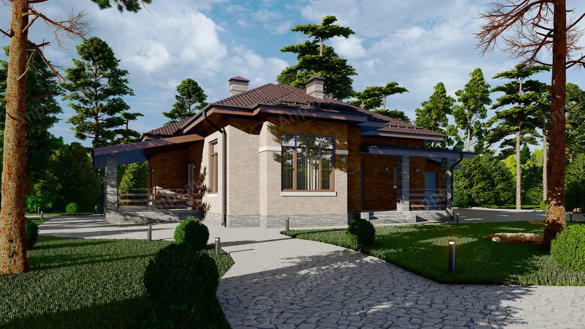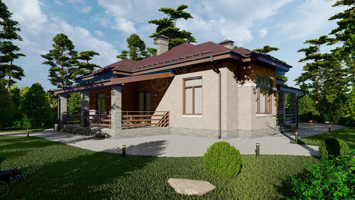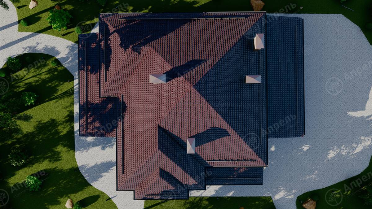 Стропильный каркас (доска сечением 200х50 мм), обрешетка (доска сечением 150х25 мм). Контробрешетка из бруска (50х50 мм). Пропитка пиломатериала огнебиозащитой. Ветро-влагозащитная мембрана Изоспан. Кровля — металлочерепица Grand Line (толщина 0,5 мм). Обшивка свесов кровли виниловыми софитами, монтаж ветровой планки.