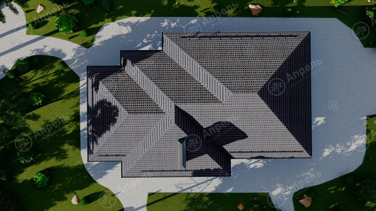 Стропильный каркас (доска сечением 200х50 мм), обрешетка (доска сечением 150х25 мм). Контробрешетка из бруска (50х50 мм). Пропитка пиломатериала огнебиозащитой. Ветро-влагозащитная мембрана Изоспан. Кровля — металлочерепица Grand Line (толщина 0,5 мм). Обшивка свесов кровли виниловыми софитами, монтаж ветровой планки.