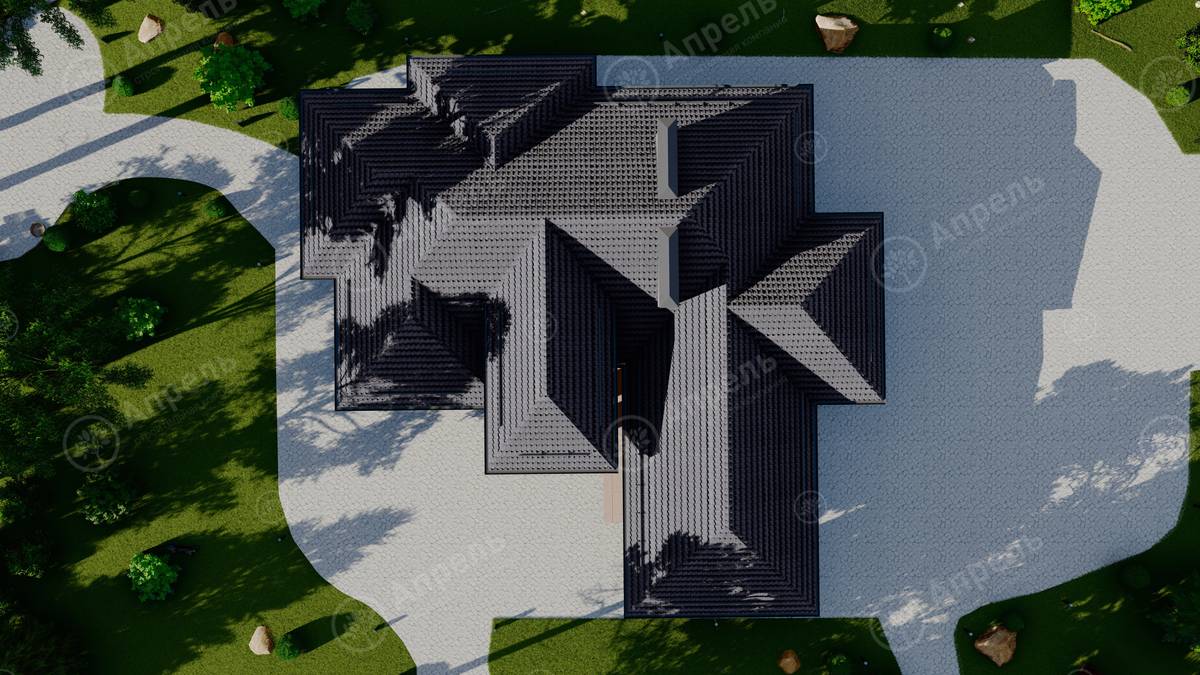 Стропильный каркас (доска сечением 200х50 мм), обрешетка (доска сечением 150х25 мм). Контробрешетка из бруска (50х50 мм). Пропитка пиломатериала огнебиозащитой. Ветро-влагозащитная мембрана Изоспан. Кровля — металлочерепица Grand Line (толщина 0,5 мм). Обшивка свесов кровли виниловыми софитами, монтаж ветровой планки.